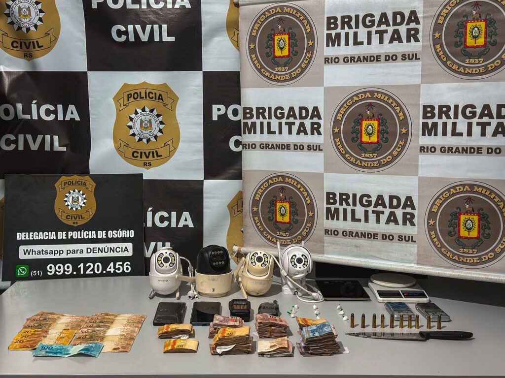 Durante a operação, foram apreendidos nove porções de cocaína, 10 munições calibre .38, R$ 7.060,00 em dinheiro, rádios comunicadores, câmeras de videomonitoramento, balanças de precisão, celulares, comprovantes de depósitos, uma faca com vestígios de cocaína e um veículo Fiat/Siena. A ocorrência foi registrada na Delegacia de Polícia de Osório.
