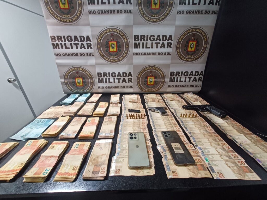 Em Tramandaí, um homem foi preso por porte ilegal de arma de fogo, no centro da cidade. Com ele foram encontrados uma pistola calibre 635 municiada, um simulacro de pistola, 15 munições calibre 635, seis munições calibre 32, dois celulares, uma mochila preta e a quantia de R$ 47.540. Ao ser questionado, ele afirmou utilizar o local como depósito e indicou a existência de mais munições e dinheiro dentro do imóvel, o que foi confirmado pelos policiais durante as buscas. O indivíduo, com antecedentes por desobediência e descumprimento de medida protetiva.