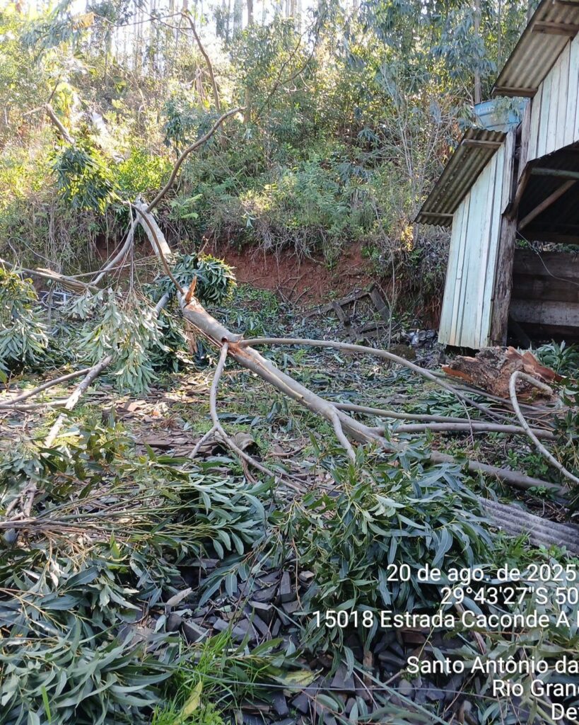 Os ventos intensos provocados por um ciclone extratropical atingiram Santo Antônio da Patrulha na madrugada desta quarta-feira (20/08), deixando um rastro de danos em diferentes localidades do interior do município. As comunidades mais afetadas foram Monjolo, Arroio do Carvalho, Campestre e Cantagalo.