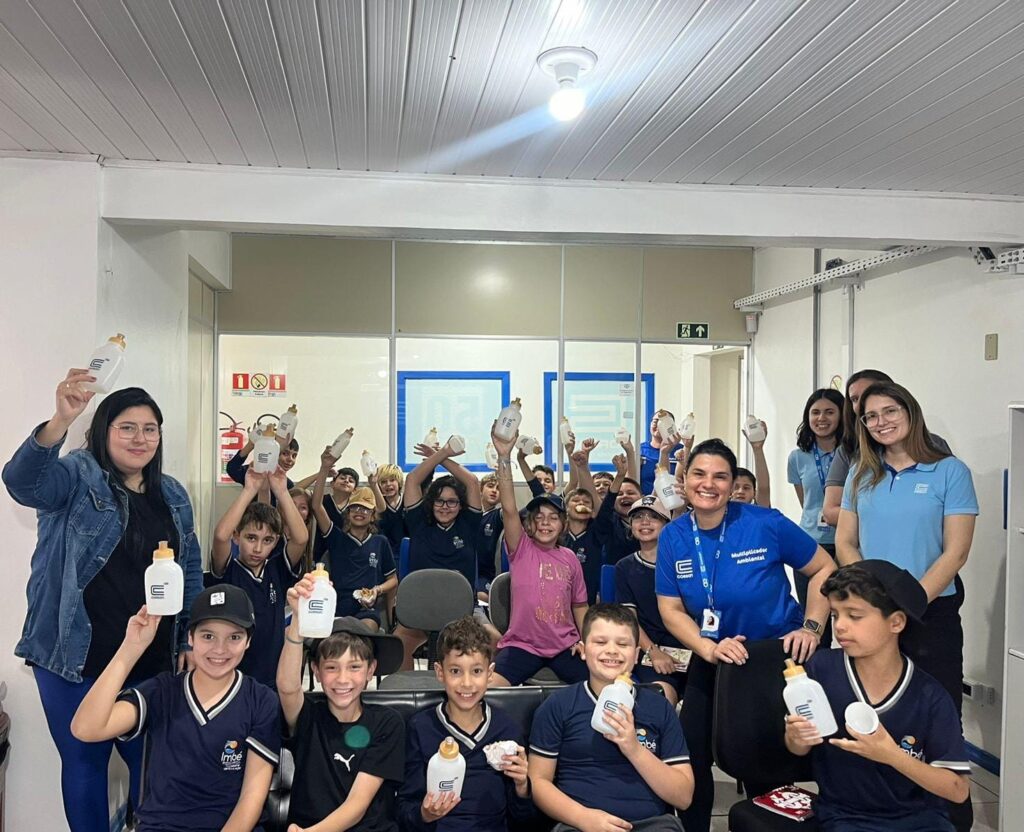 Os estudantes do 4º ano da Escola Municipal de Ensino Fundamental Tiradentes, de Imbé, participaram dos programas De Olho no Óleo e Portas Abertas, da Corsan. As duas iniciativas são voltadas à educação ambiental, com o objetivo de apresentar as estações de tratamento de água e esgoto da Companhia, informar e promover conscientização sobre a preservação do meio ambiente (em especial, as fontes naturais de água) – e a destinação correta de resíduos, a partir de soluções e práticas e sustentáveis.