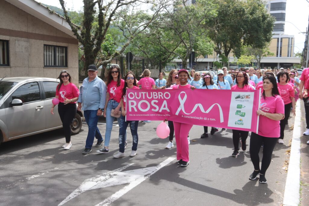 CAMINHADA DAS VITORIOSAS É REALIZADA NO CENTRO DE OSÓRIO E CHAMA A ATENÇÃO DA POPULAÇÃO PARA A PREVENÇÃO AO CÂNCER DE MAMA