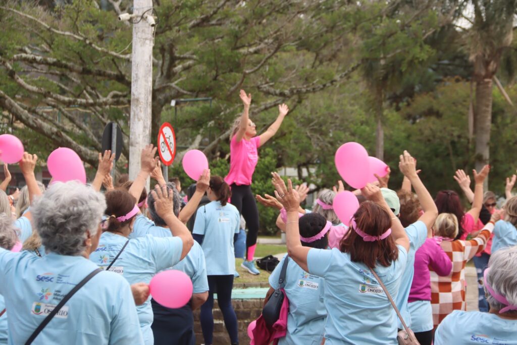 No último sábado pela manhã (25/10), o município de Osório deu continuidade na programação do Outubro Rosa com a realização da Caminhada das Vitoriosas, com largada na Praça das Carretas. O Estúdio Josi Araújo conduziu o aquecimento para uma manhã de muita descontração, alegria e emoção entre os participantes que vestiam camisetas na cor rosa e azul clara, do grupo Sesc Maturidade de Osório. O grupo percorreu as principais ruas da cidade indo até a Costa Gama e depois em direção ao Largo dos Estudantes Sônia Chemale onde ocorria a Feira do Produtor.