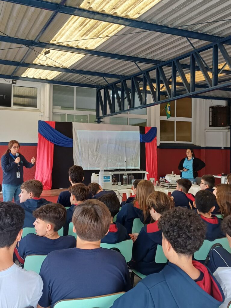 Estudantes do 7º ano da Escola de Educação Básica São Domingos, unidade do Sagrado Rede de Educação, de Torres, assistiram a duas palestras promovidas pela Corsan sobre água, esgoto e preservação ambiental, na última terça-feira (28/10). A iniciativa faz parte do programa Saúde Nota 10, que busca fortalecer a relação com as comunidades e estimular a cidadania e o respeito à natureza.