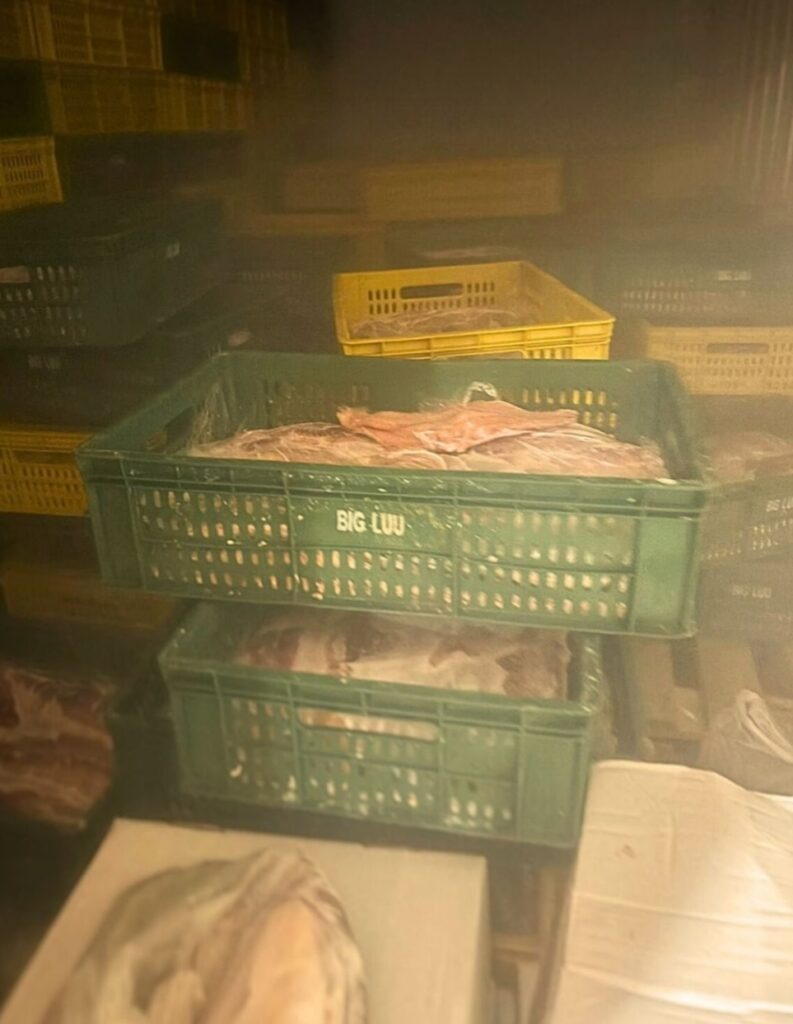 Durante a fiscalização, também foram encontrados filés de peixe da espécie bagre, fracionados e sem rótulo de inspeção, armazenados em freezers. A Inspetoria de Defesa Agropecuária foi acionada e realizou análise técnica, constatando que os produtos estavam impróprios para consumo.