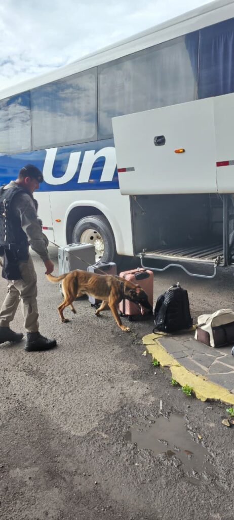 Para a fiscalização nos ônibus, foram empregados cães de detecção dos Canis do CRPO Litoral e do 1º Batalhão de Polícia de Choque (1º BPChq), conduzidos por seus respectivos binômios. A operação contou ainda com a participação de efetivos do 8º BPM, 2º BPAT e do reforço operacional que atua na região durante a 56ª Operação Golfinho.